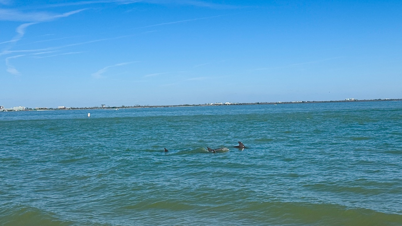 We were strolling by the seashore when this school of dolphins showed up, unannounced. There were five of them that we could count. They hung around for a full fifteen minutes!