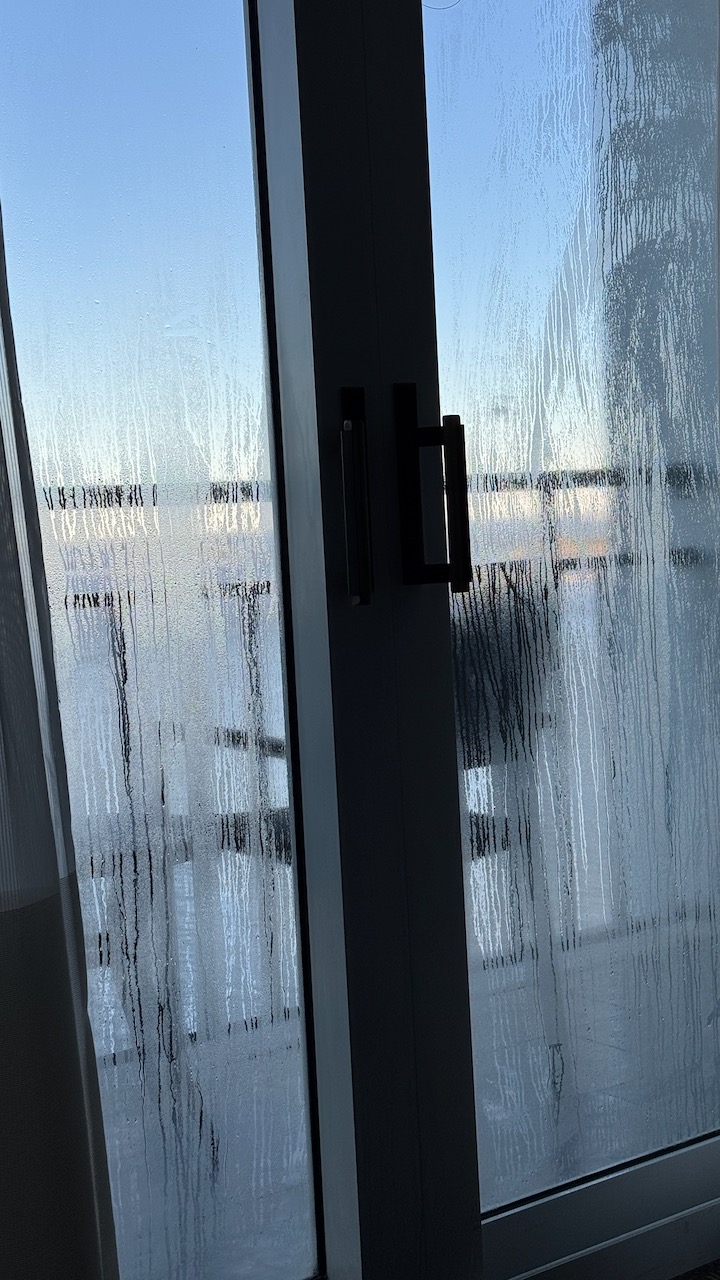 I woke up this morning to this same frosty glass door. The problem is that we did not have the air conditioning on. It is freezing here in Florida. How did the condensation happen then?