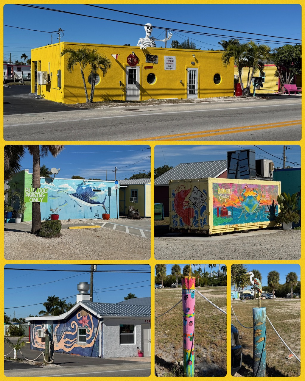 We first went to the small island village of Matlacha. It is billed to be a old Florida fishing village with a lot of bright art work on the walls. During our drive there, it did seem that the village got terribly affected Hurricane Ian and is yet to recover.