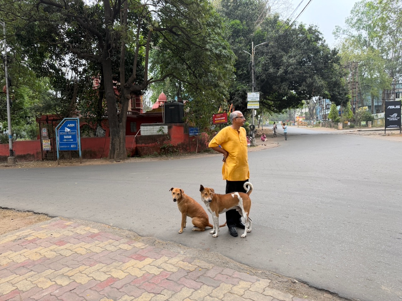 Wherever my siblings go, somehow the local dogs know they are around and will surround them looking for attention. This is when my brother and I went for a walk in City Center streets.