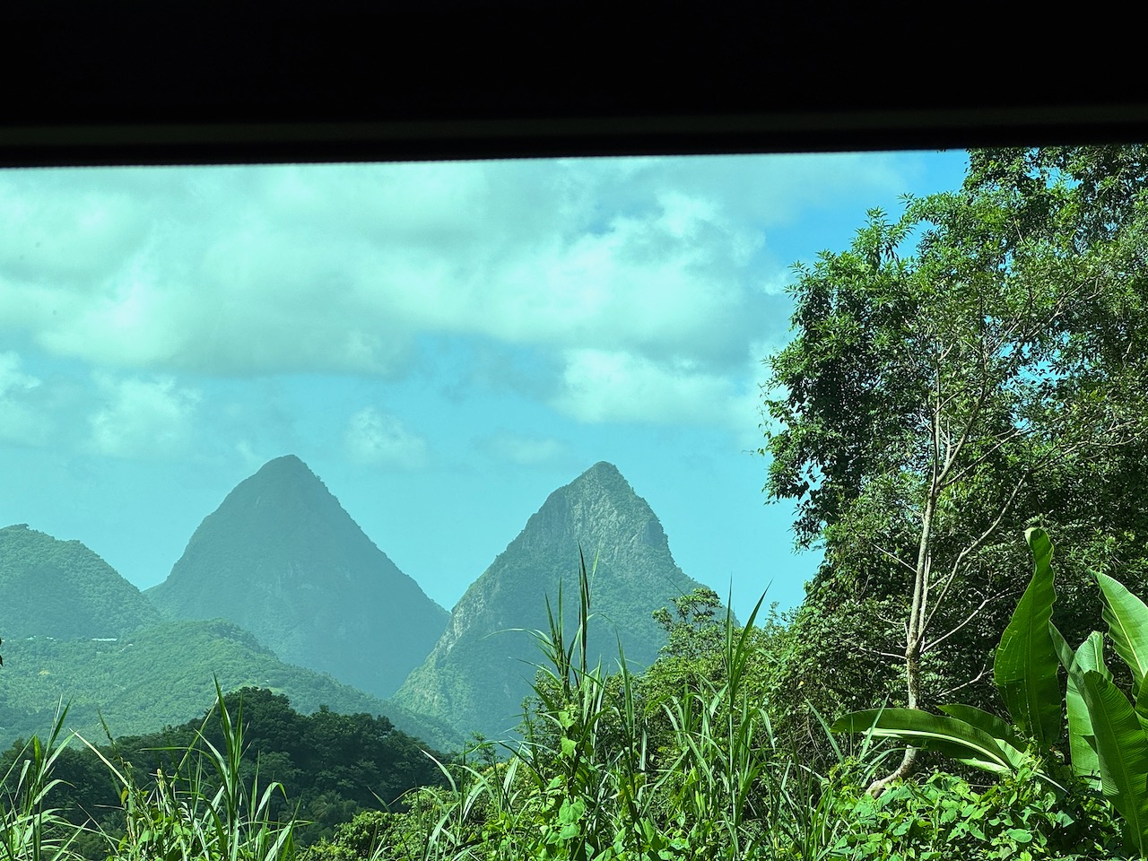 First view of the Pitons from the bus